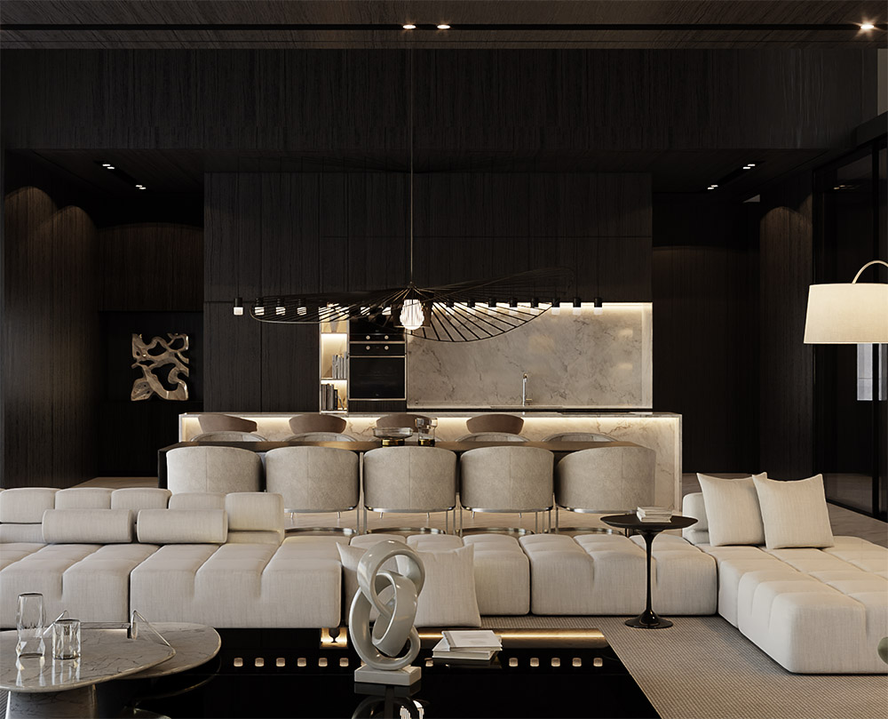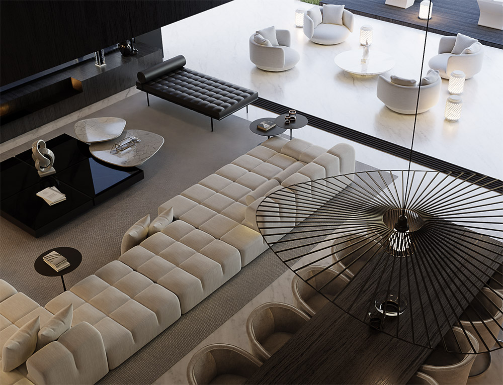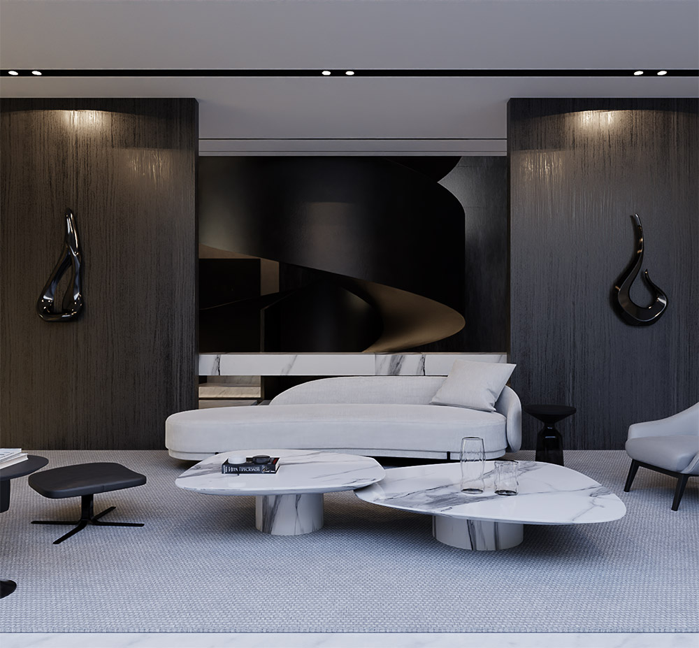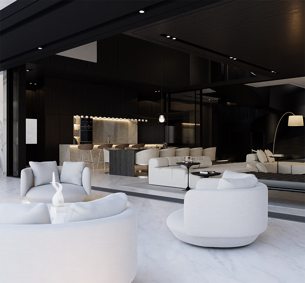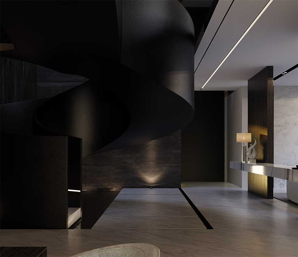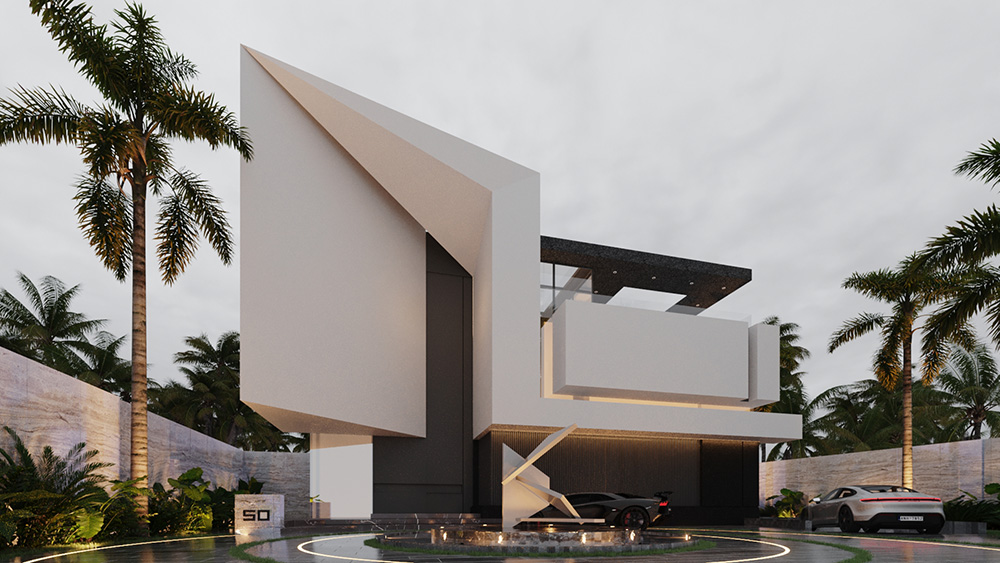 Located in one of the most privileged places of Doha, the Pearl, this project presents our architecture through sharp angles and the use of parametric shapes to bring magnificence to the project. The triangular forms unite themselves as a way of highlighting the geometric shapes. A fountain was added in front of the house to welcome the guests. The residence features 3 floors and a total of 1.200 m² designed.