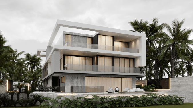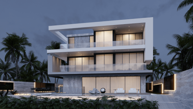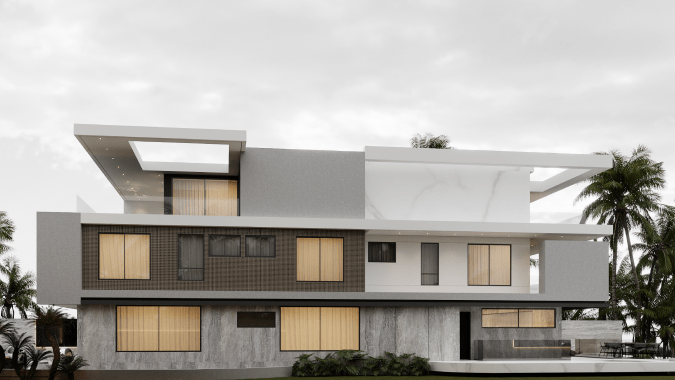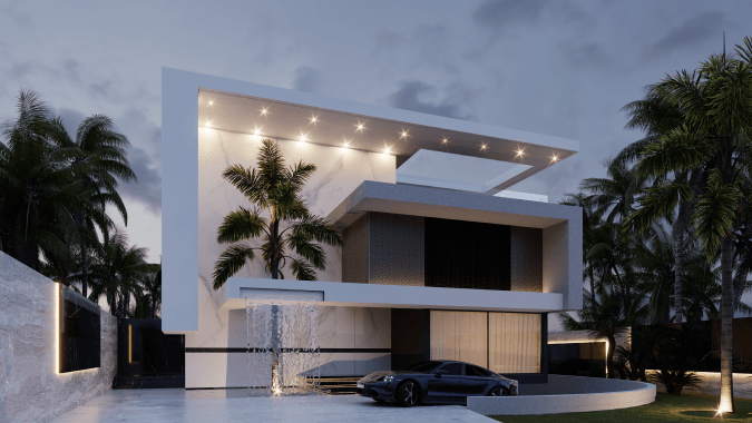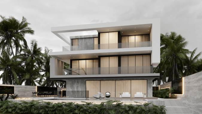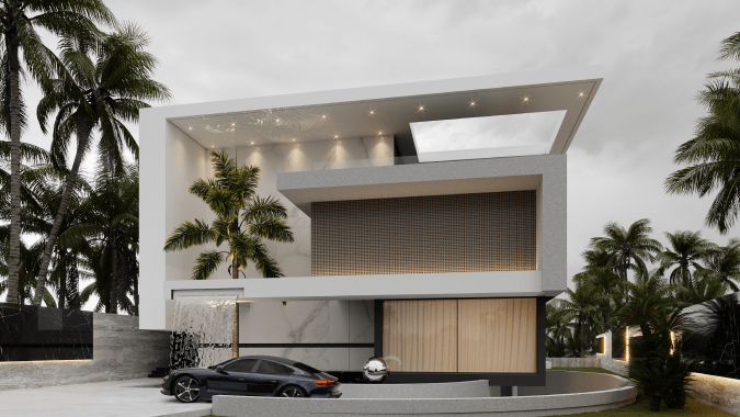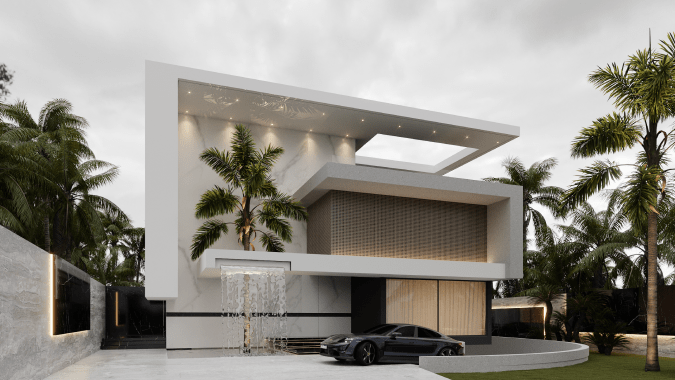 When creating this Villa, the idea was to harmonize architectural modernity with the surrounding natures serenity. The clean facade, cloaked in marble and adorned with light tones, was planned to evoke a sense of sophistication and tranquility from the moment of arrival. The choice of marble for the facade wasnt merely aesthetic but also a functional decision, ensuring durability and elegance over time. The cascade and fountain on the main facade were integrated not only as decorative elements but also as a sensory experience, inviting visitors to engage with the environment upon arrival. Upon entering the residence, the intersection between wooden tones and light marble was carefully designed to create an ambiance of serenity and sophistication, fostering a feeling of warmth and comfort. The layout of the living area, strategically positioned to capture the breathtaking view of the sea, was intended to provide an atmosphere for contemplation and relaxation, seamlessly integrating nature into the internal space.