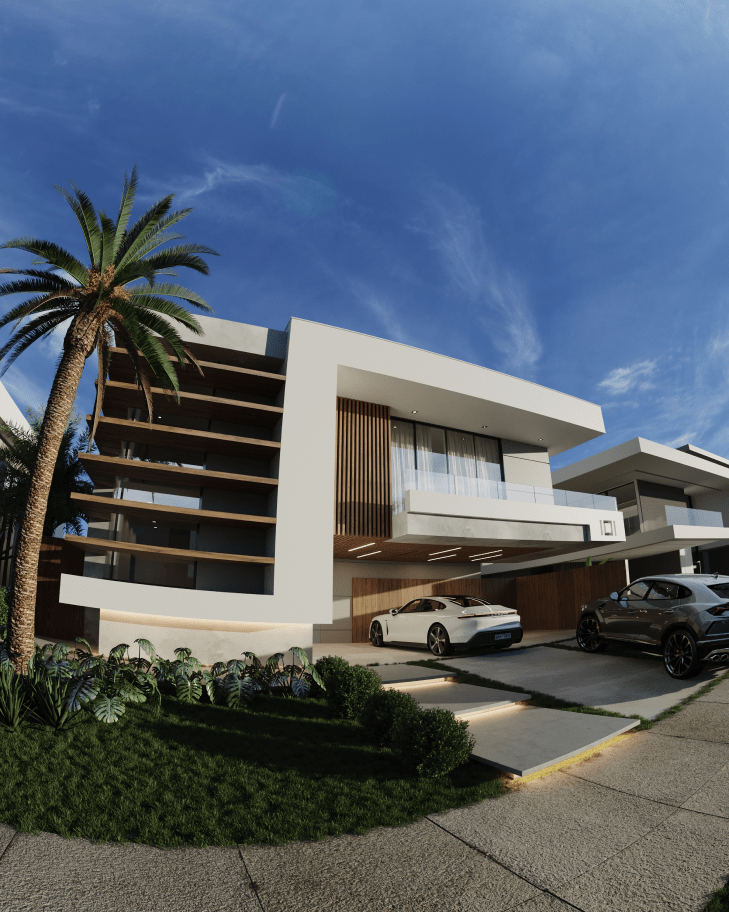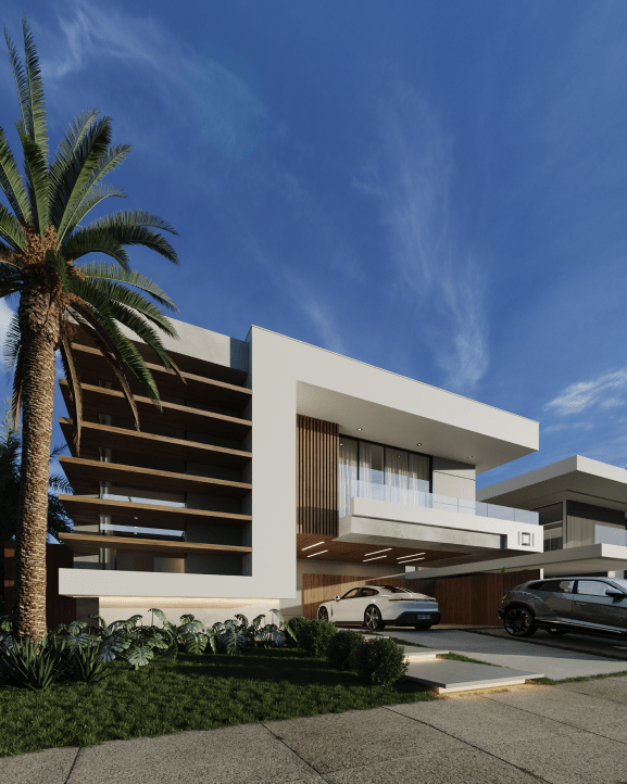 This architectural project was meticulously developed for a couple with two children, and it stood out for the special use of wood. The choice of materials played a vital role in the conception of the work. We chose to work with wood in various details of the facade, complemented by black and white, which established a harmonious connection with the garden and the surrounding vegetation. This choice was not merely aesthetic, but also symbolic, since the wife of our client has a professional bond with this element. In summary, the project was not only an exercise in creativity and technical skill, but also an opportunity to incorporate deeper meanings and personal connections through the intelligent and sensitive use of materials and design.
