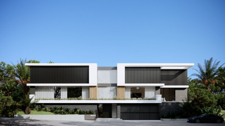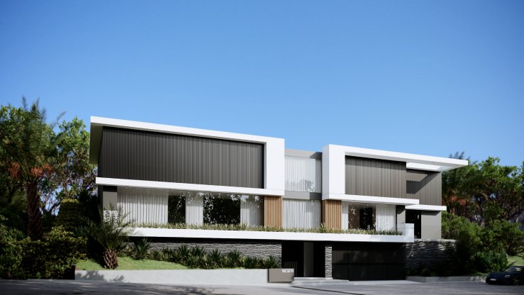 Located in Los Angeles, on the hill of The Bird Streets, this project consists of a facade retrofitof an existing house. The goal was to modernize the facade, prioritizing large openings forviews of West Hollywoodand the city center.The facade was composed of dark colors and stones with wooden tones, creating asophisticated and modern contrast. The house, positioned on top, has its lower level featuringthe garage and service areas. The first floor is dedicatedto common areas with spacious andintegrated spaces for hosting friends and family. On the upper floor, the bedrooms and privateareas are located.The windows and openings are the main highlight of the project, allowing the surroundinglandscape to seamlessly integrate with the interior spaces of the house. Residents can enjoyincredible views, creating a unique connection between the house and the urban landscape.