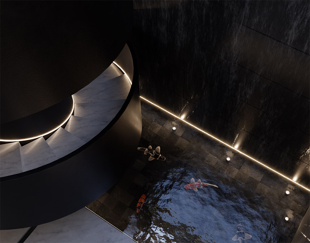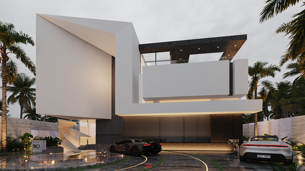 Located in one of the most privileged places of Doha, the Pearl, this project presents our architecture through sharp angles and the use of parametric shapes to bring magnificence to the project. The triangular forms unite themselves as a way of highlighting the geometric shapes. A fountain was added in front of the house to welcome the guests. The residence features 3 floors and a total of 1.200 m² designed.