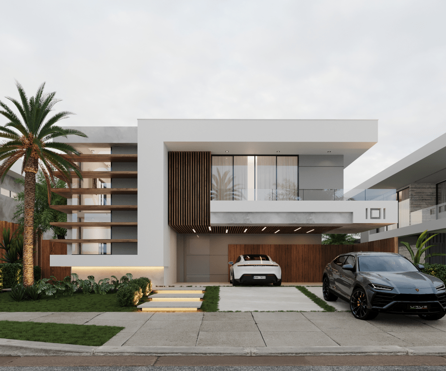 This architectural project was meticulously developed for a couple with two children, and it stood out for the special use of wood. The choice of materials played a vital role in the conception of the work. We chose to work with wood in various details of the facade, complemented by black and white, which established a harmonious connection with the garden and the surrounding vegetation. This choice was not merely aesthetic, but also symbolic, since the wife of our client has a professional bond with this element. In summary, the project was not only an exercise in creativity and technical skill, but also an opportunity to incorporate deeper meanings and personal connections through the intelligent and sensitive use of materials and design.